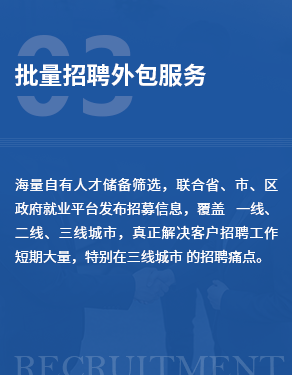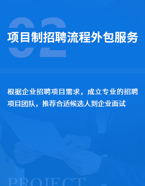 企业将整个招聘流程外包,从人力发掘到最后的招聘录取工作都由我们为企业服务。为客户带来的价值包含提升招聘策略、优化流程、保障多快好省的招聘结果,灵活应对弹性人才需求等。在人力资源管理较为成熟的企业,招聘流程外包服务逐渐成为企业招聘战略的重要补充方式。